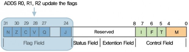Condition Flag는 CPSR레지스터의 [31:24] 비트 필드에 정의되어 있습니다.