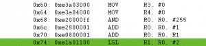 MOV R0, #0×104 ; 100000100 –> permitted