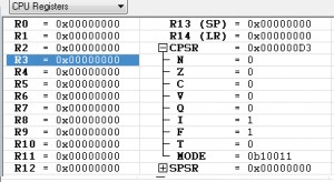 condition field 에 Z flag 가 Set 되었다는 의미는 R1, R0 의 값이 같아서 R3에 “0″이 저장이 되었다는 의미입니다. 참고로 CMP, TST, CMN, TEQ instructions 등의 비교, 검사 명령어들은 “S” Prefix가 없이도 CPSR의 condition flag가 업데이트 됩니다.